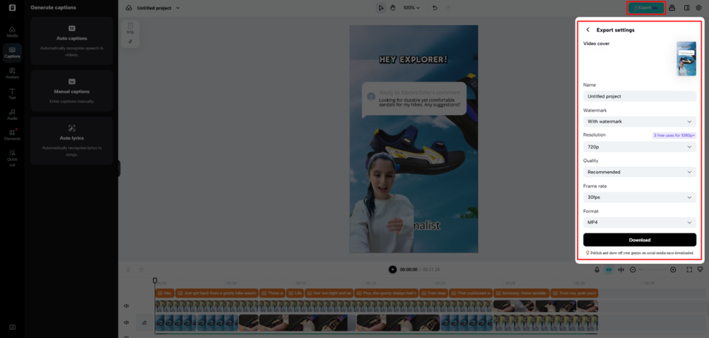 Step 3: Finalize and Publish Customize your project using scripts, text or effects. Once you are done, export the video in high res and post it directly on TikTok, Instagram, or other social media platforms with Pippit preset exports tailored to each platform.